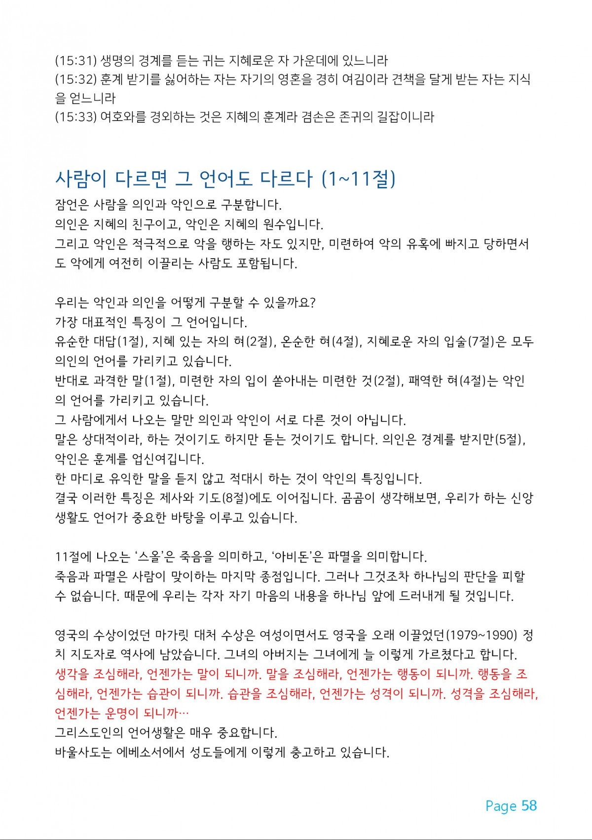 잠언과 함께 하는 새해 (1월15일)